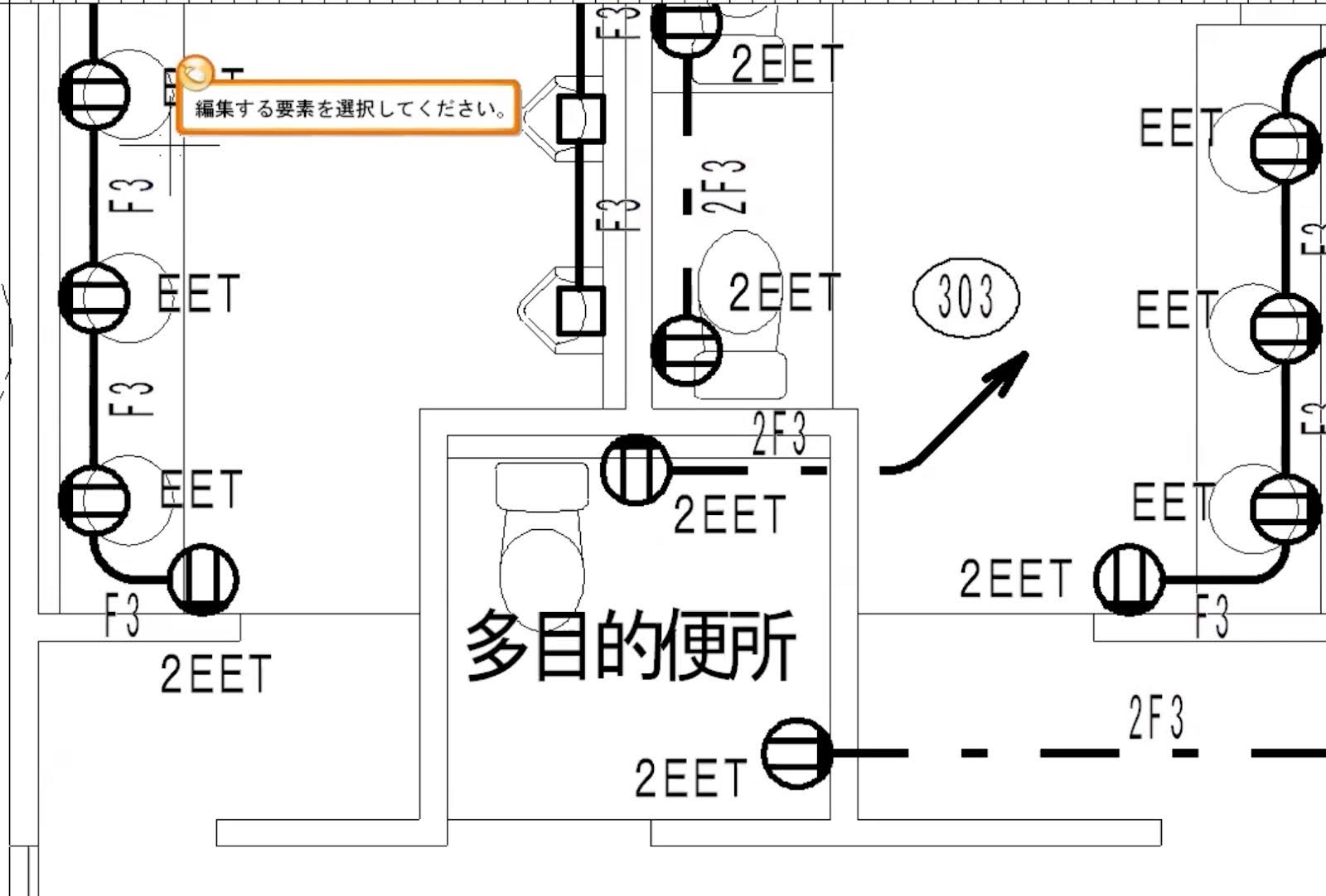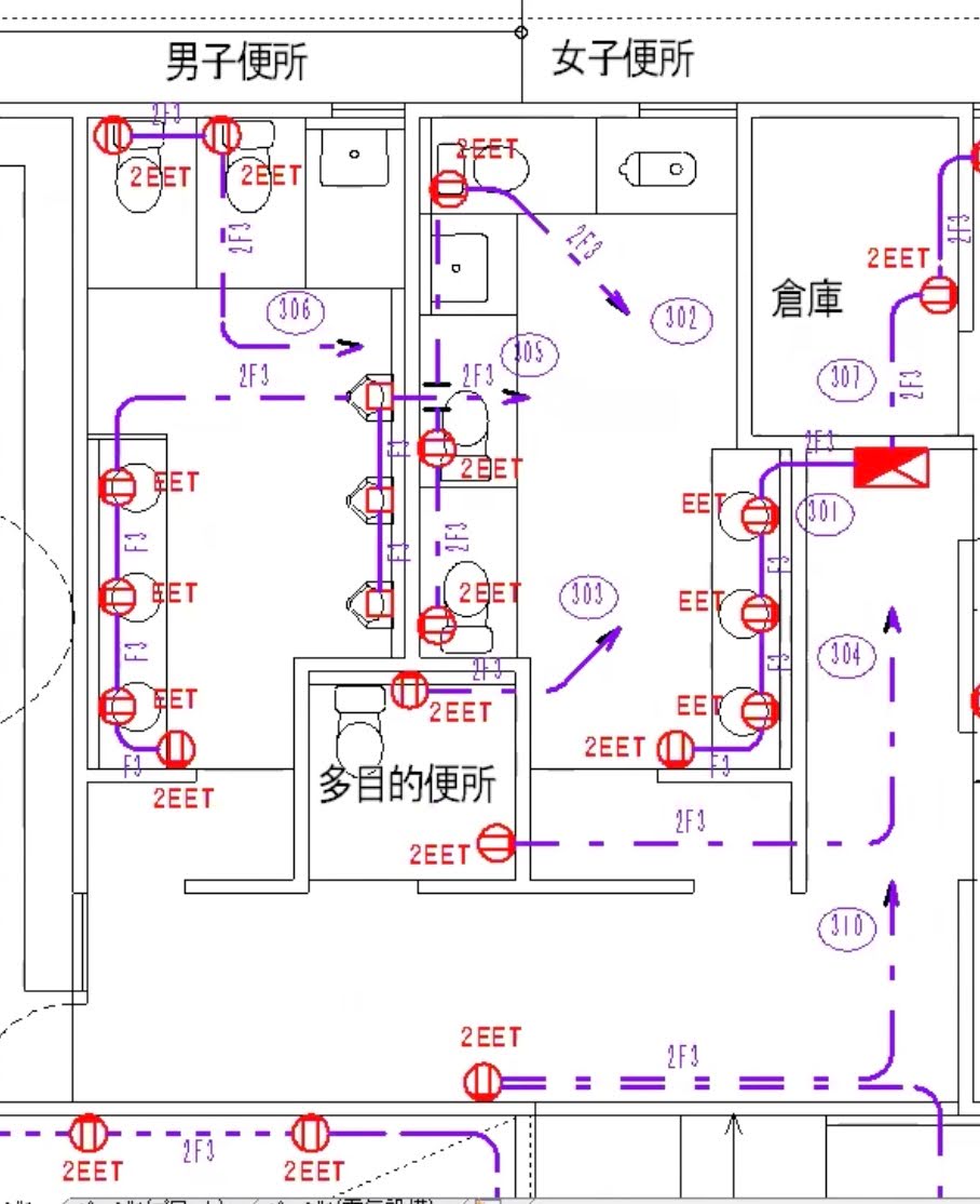 ところが、ベクトル解析ができるようになったことで、図面を範囲選択すると、電気機器は赤、配線は紫、といった形で自動的に一瞬で色分けされるようになりました。
