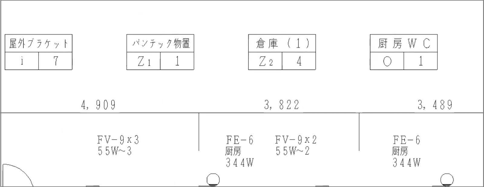 図面では、外側に下記のような「器具表(器具名、対応するアルファベット、個数)」が添えられているのが一般的です。