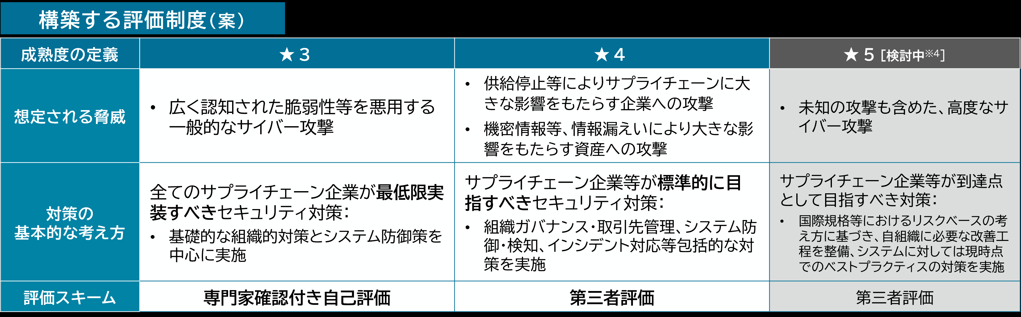 これは、企業のセキュリティ体制や、サプライチェーン全体での取り組み状況を評価し、「星」の数で見える化する制度です。いわば“セキュリティ版ミシュラン”ですね!